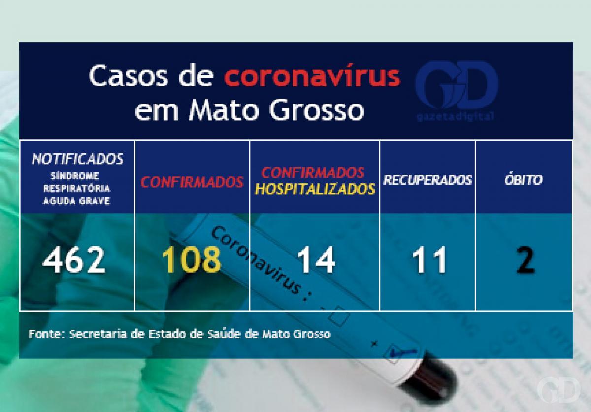 A Secretaria de Estado de Saúde (SES) divulgou nesta quinta-feira (9) que Mato Grosso notificou 108 casos confirmados da Covid-19 em Mato Grosso, sendo registrados dois óbitos em decorrência de coronavírus. A segunda morte em decorrência da Covid-19 ocorreu na noite de quarta-feira (8.04), em Cáceres.
