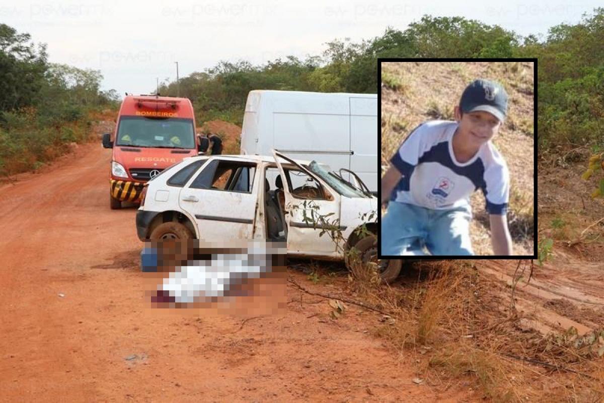 Aylon Vitor Santos de Almeida, 13, morreu após um acidente de trânsito, na zona rural de Nobres (146 km ao médio-norte de Cuiabá), na tarde de terça-feira (4). Ele estava no carro da família, que perdeu uma roda, bateu em uma estrutura de concreto e capotou. O menor morreu no local.