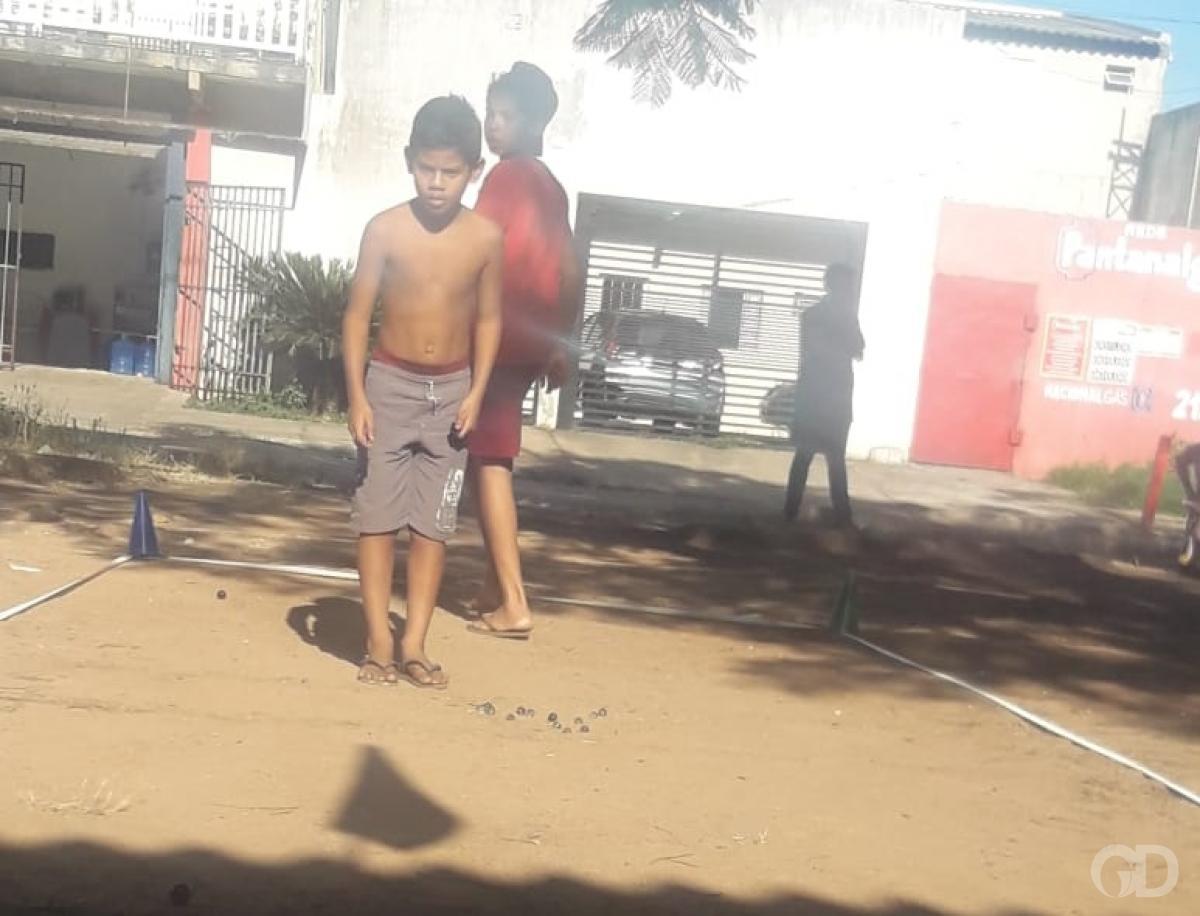 Cerca de 20 meninos, crianças e adolescentes, se reuniram na tarde deste sábado (29), em um terreno em frente à Escola de Educação Básica Municipal Dom Bosco, no bairro Praeirinho, em Cuiabá, para se divertir de uma forma tradicional e cada vez mais incomum, principalmente nas grandes cidades, onde o fácil acesso à internet tem levado as pessoas a buscarem entretenimento no mundo virtual: jogando bolita.