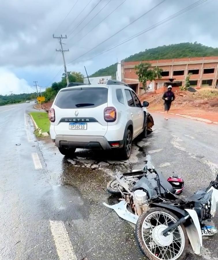 Uma adolescente ficou ferida em um acidente registrado por volta das 12h desta quarta-feira (3), no Trevo do Bambu, em Diamantino (208 km a Médio-norte). A batida envolveu uma motocicleta Honda Biz branca e um Renault Duster prata.
