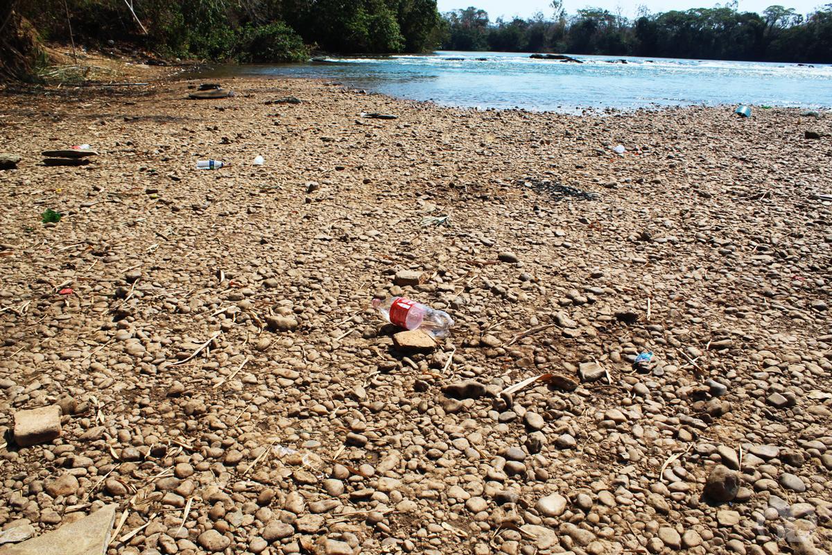 Mesmo baixo, o rio continua lindo. E, tão avassalador quanto a seca é a falta de educação dos frequentadores que não recolhem o próprio lixo. Como o ser humano ainda é sem civilidade!