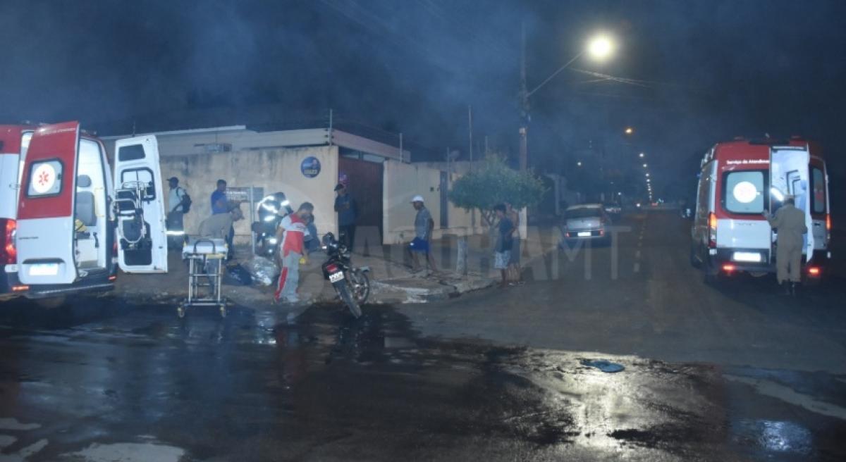 Um motociclista e um pedestre ficaram gravemente feridos em um acidente, na noite de segunda-feira (2), no Centro de Rondonópolis (212 km ao sul de Cuiabá).