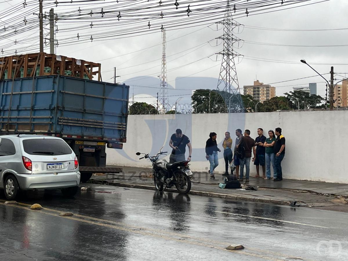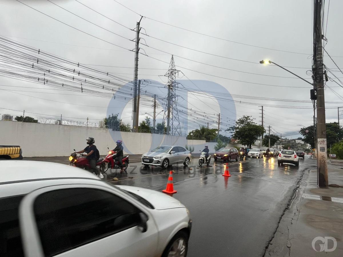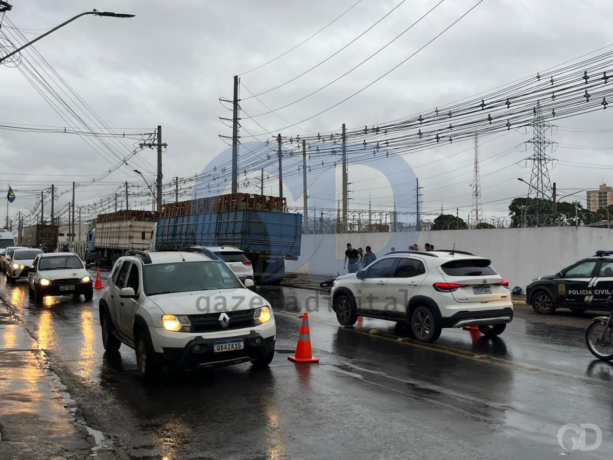 , a carreta estava na pista, ao lado do muro da concessionária de energia, no sentido avenida Miguel Sutil.