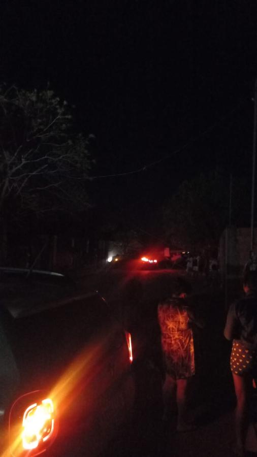 A equipe da Energisa foi chamada e disse que não era possível remover o carro devido ao risco causado pela fiação elétrica e pelo peso da estrutura sobre o veículo.