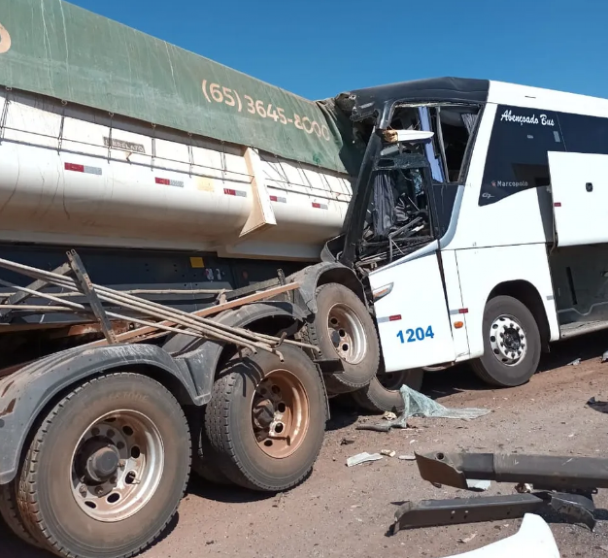 Motorista de um ônibus intermunicipal morreu e outros 4 passageiros ficaram feridos em acidente com carreta, na manhã desta quarta-feira (21), na MT-235, entre Campo Novo do Parecis e Sapezal (396 km e 480 km a noroeste respectivamente).