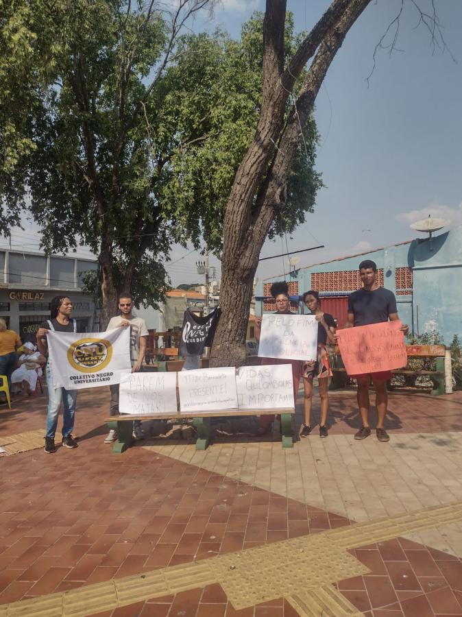 Nem mesmo o sol forte do meio impediu os protestantes de irem à rua. Ato contou com a participação do Coletivo Negro Universitário da Universidade Federal de Mato Grosso (UFMT). Conforme a integrante do coletivo, Lupita Amorim, o fim da violência é objetivo do protesto.
