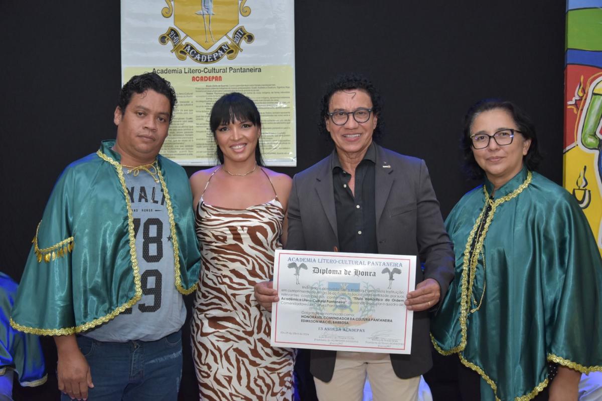 Um dos mais aclamados nomes da cultura mato-grossense, o músico, ator e arranjador Edmilson Maciel agora também é guardião da cultura pantaneira. Ele recebeu a comenda na última sexta-feira (5), durante a celebração de 13 anos da Academia Lítero-Cultural Pantaneira (Acadepan).