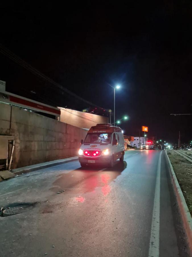 Assim que se aproximou da trincheira, a mulher que pilotava a motocicleta colidiu na lateral do concreto. Com o impacto do acidente, uma das vítimas fraturou o pé e o fêmur.