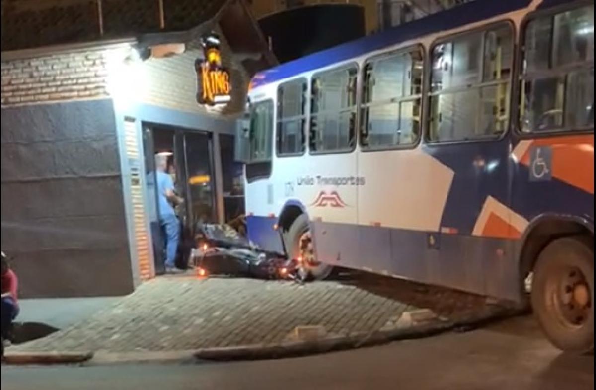 A placa de um comércio é destruída e a moto da vítima para sob o ônibus. Conforme informações da Guarda Municipal de Várzea Grande, o piloto não teve ferimentos graves.