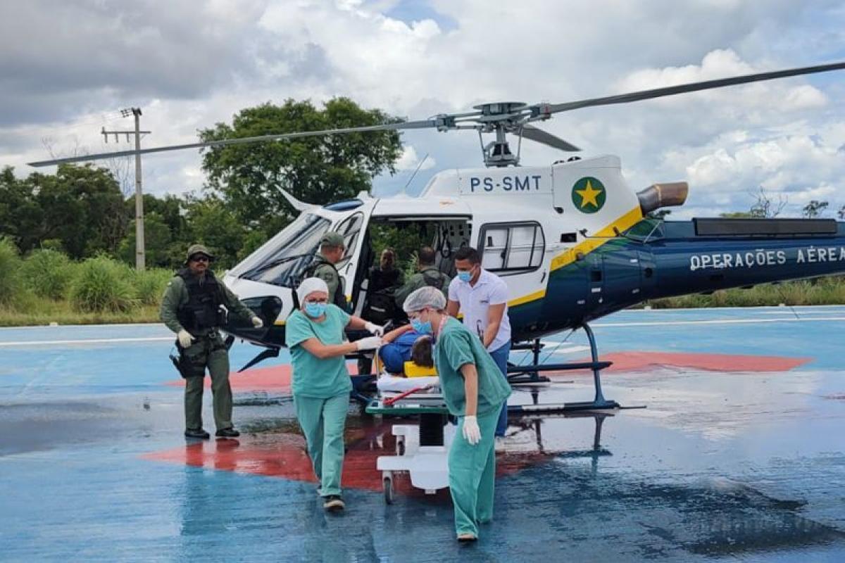 Daniel foi transportado de helicóptero até o heliponto do HMC, que dá acesso próximo ao setor de Urgência e Emergência do Hospital Municipal de Cuiabá, onde recebeu atendimento imediato.