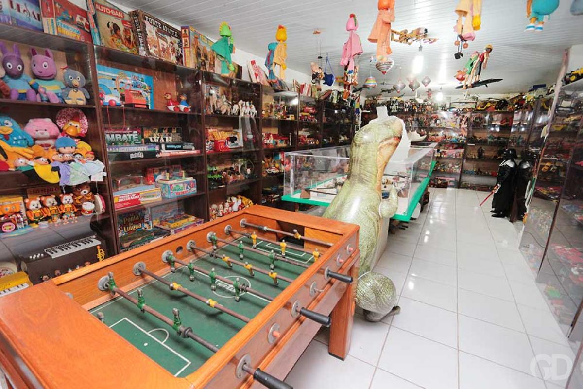 São dezenas de vitrines e expositores, divididos em 12 ambientes diferentes – desde a entrada até o escritório das administradoras – que separam os itens por décadas de produção e lançamento.