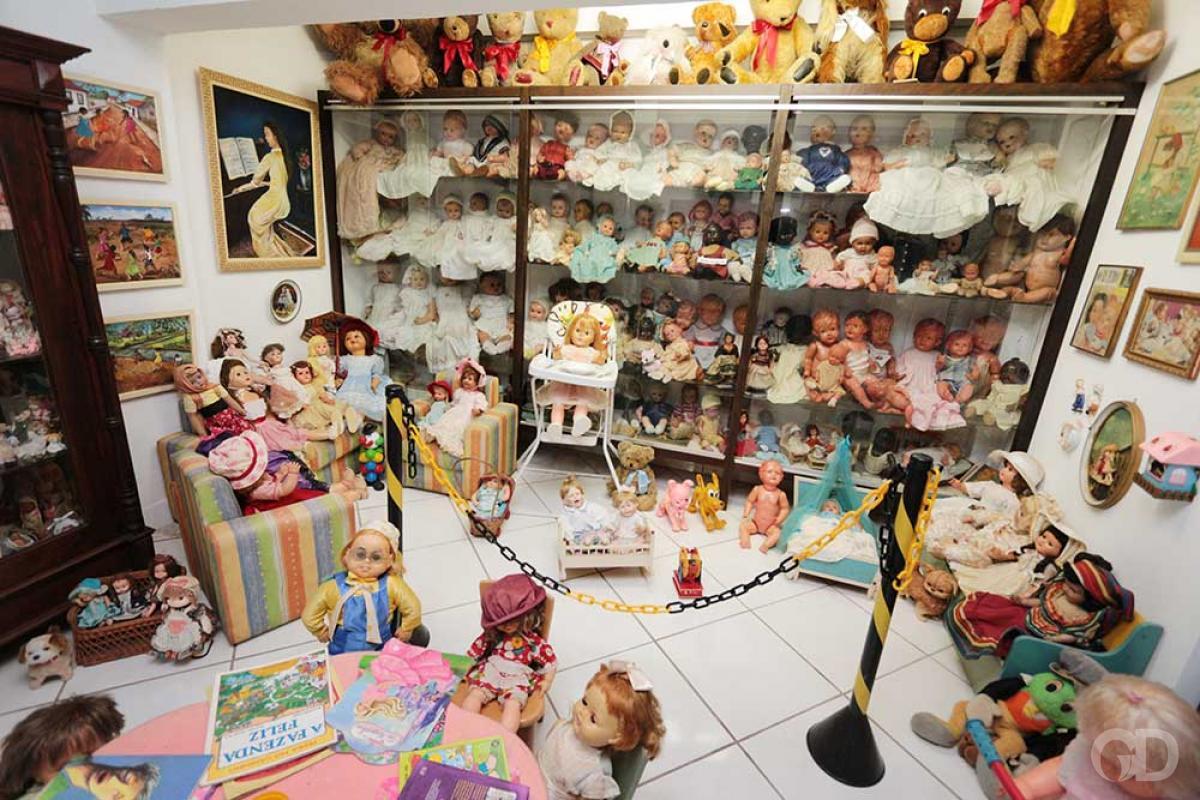 “Entre bonecas e brinquedos expostos temos 7 mil. Além disso, contamos com uma reserva técnica de outras 7 mil peças, que estão armazenadas em outra casa exclusiva para este fim. Falta espaço para colocá-las em exposição aqui no museu”, relata Flávia.
