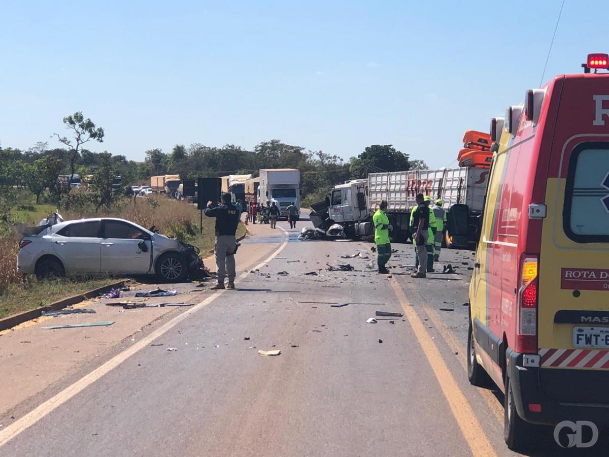 A Polícia Rodoviária Federal (PRF) identificou como L.V.F., 62, o motorista do carro de passeio morto no acidente.