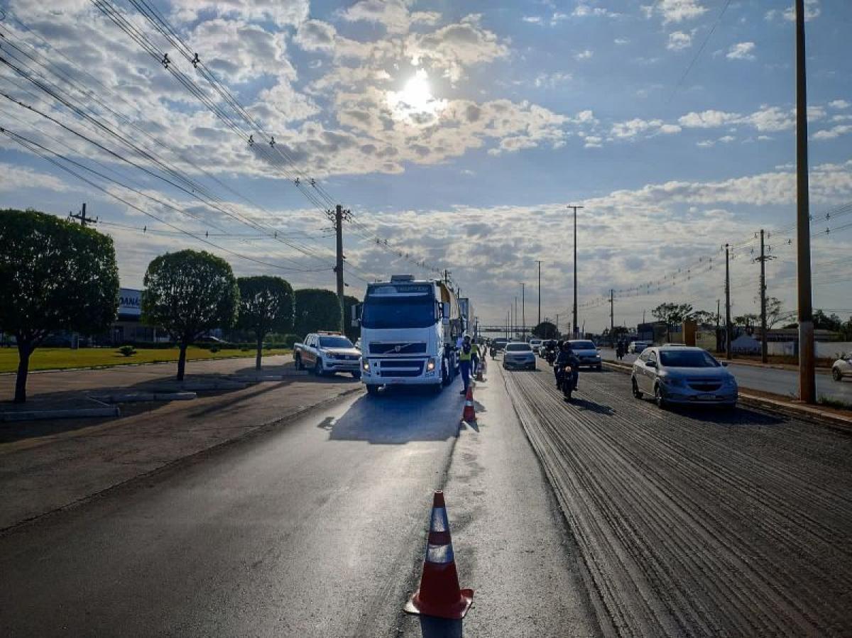 Vinte e quatro caminhoneiros foram autuados por circular com veículo de carga, em Cuiabá, durante os dias 11 e 15 de setembro. Secretaria de Mobilidade Urbana (Semob) abordou 60 caminhões durante a Operação "Carga Pesada".