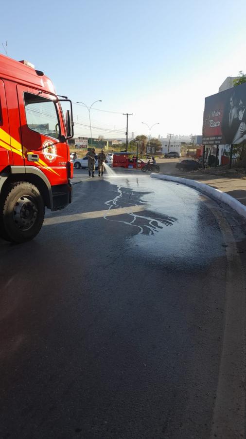 O Corpo de Bombeiros esteve no local para lavar o asfalto e tirar todo resquício do produto da pista. O trânsito seguiu lento.