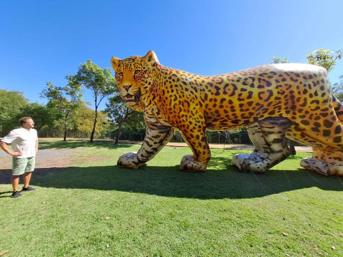 Com 4 metros de altura, 10 metros de comprimento e dois de largura, a onça-pintada é a intervenção do artista plástico Eduardo Srur que explica ser uma excelente forma de expressão e de como se comunicar com um público diversificado.