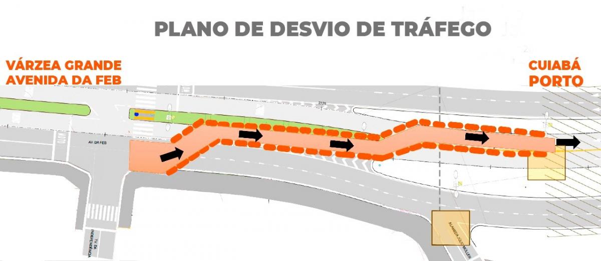 A avenida da Feb será interditada a partir desta quarta-feira (10), no sentido Várzea Grande/Cuiabá, para obras de drenagem e pavimentação no local. Medida faz parte das obras de implantação do Bus Rapid Transit (BRT) na cidade.