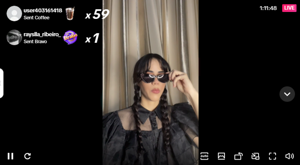 Na tarde desta terça-feira (19), a influenciadora digital de Sorriso (500 km ao norte de Cuiabá) Bruna Piasse, 23, esteve mais uma vez na live NPC. Anteriormente ela tinha conseguido R$ 20 em minutos. Dinheiro é em dólar e convertido para o real. Piasse também é conhecida por interpretar a personagem Wandinha. Piasse tem 53 mil seguidores somente no Tik Tok. Ganho não foi possível de ser contabilizado, pois até o momento que a reportagem acompanhou, o 'ao vivo' não havia sido encerrado.