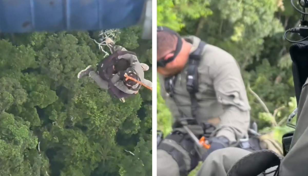 Após o resgate, o helicóptero percorreu cerca de 16 quilômetros até um ponto previamente definido, onde, em voo pairado, a vítima e o operador foram embarcados com segurança.