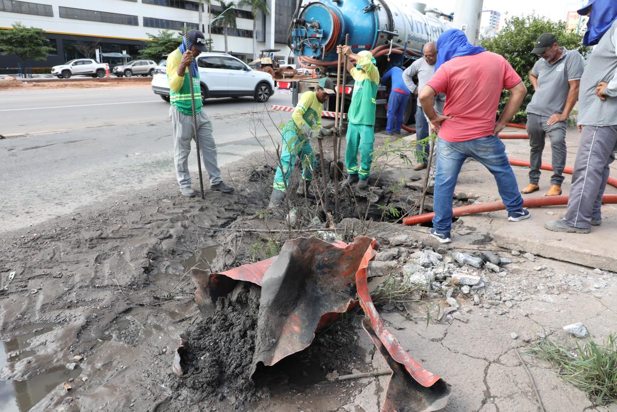 Na Avenida Miguel Sutil, quatro toneladas de lixo foram retiradas de uma boca de lobo que vinha causando alagamentos no local. Entre os materiais encontrados estavam placas de veículos, pedaços de para-choques e fragmentos de pneus.