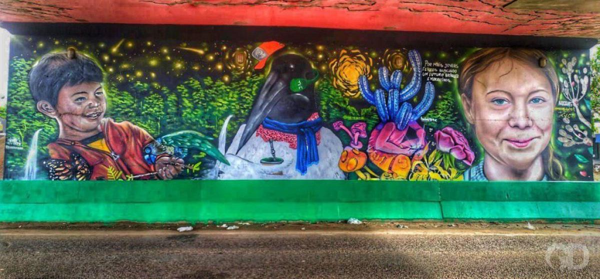 Então, conforme Daniel, a primeira etapa aconteceu e os artistas trabalharam no viaduto com imagens de animais, insetos e natureza. Já na segunda parte do projeto, que aconteceu no último final de semana, as obras vinham sendo produzidas até que na manhã de segunda-feira (30), acordaram com a polêmica da obra da Greta.