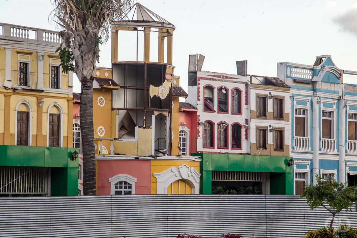 Entregue à população cuiabana há pouco mais de 3 anos, a Vila Cuiabana, na Orla do Porto, em Cuiabá, apresentou problemas de estrutura e, em outubro de 2019, foi interditada por risco de desabamento. O monumento feito de madeira é uma imitação de fachadas de casas históricas.