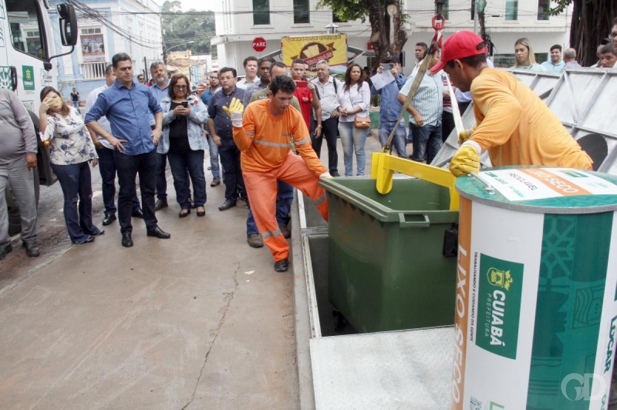 Como parte do planejamento de melhorias na prestação do serviço de recolhimento e destinação de resíduos, a Prefeitura de Cuiabá inaugurou nesta quinta-feira (11) o primeiro conjunto de lixeiras subterrâneas. Instalada na Praça Alencastro, a estrutura já está em funcionamento e também será levada para outros cinco pontos de grande fluxo do Centro Histórico da Capital.