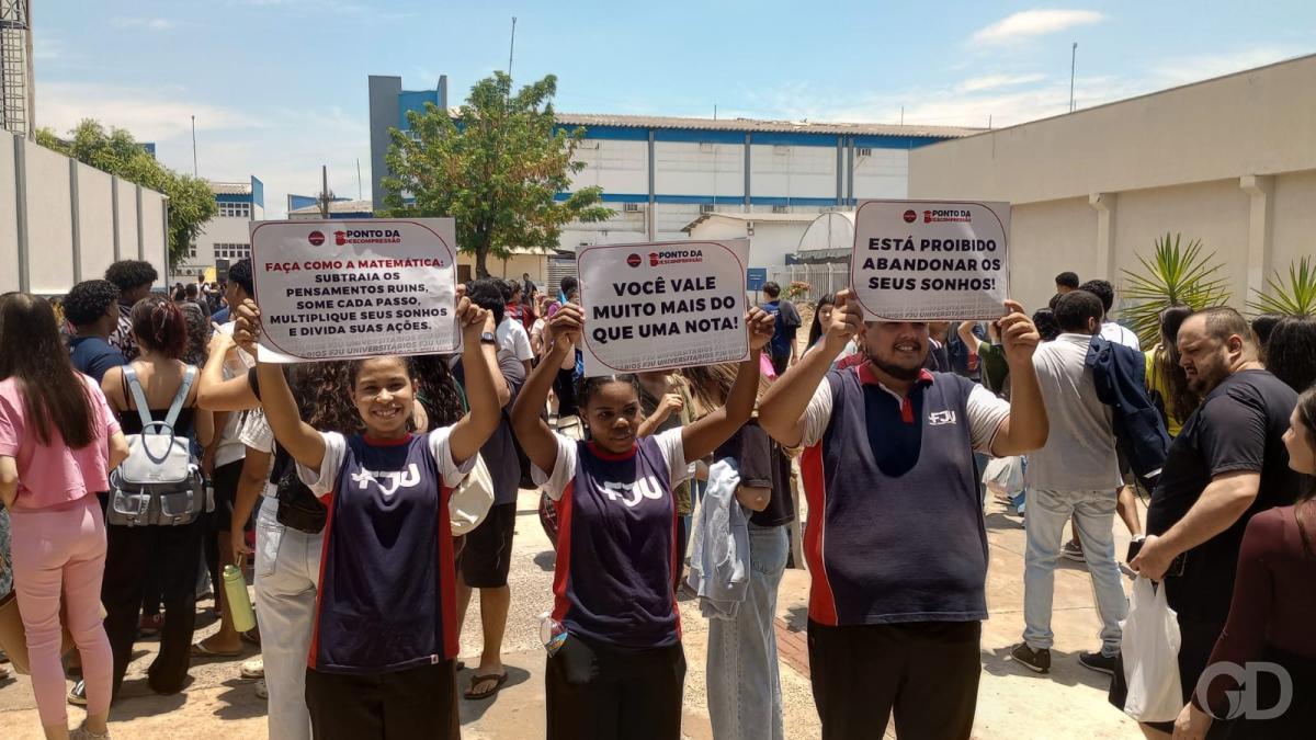 Neste ano, num incentivo aos candidatos, pessoas carregavam cartazes com frases motivacionais. “Posso orar por você” e “Está proibido abandonar os seus sonhos” eram lidos por quem chegada à Universidade de Cuiabá (Unic) para o exame que garante ingresso em instituições públicas de ensino superior.