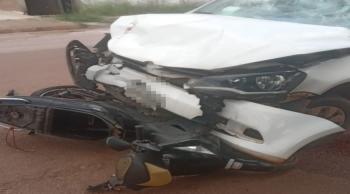Uma mulher, que não teve seu nome divulgado, ficou ferida após ser atropelada por um veículo de passeio na tarde de segunda-feira (16), em Sinop (500 km ao norte de Cuiabá).