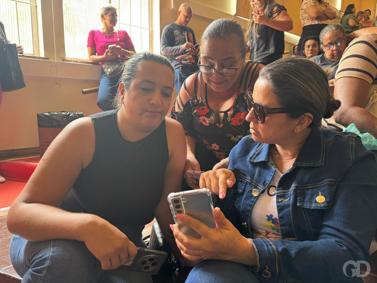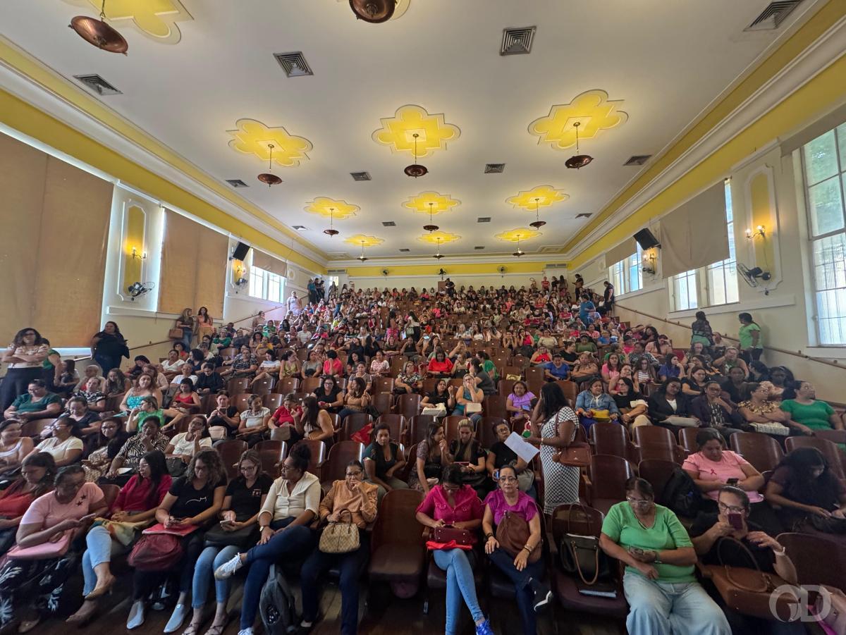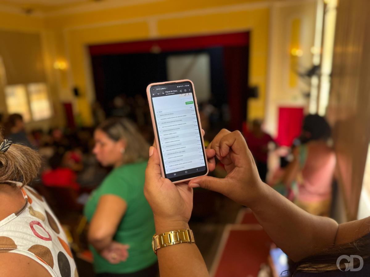 esteve no local e constatou que o teatro estava lotado. Uma das profissionais é Layla Lúcia, que chegou por volta das 7h30 e foi surpreendida pela quantidade de pessoas e pelo número de vagas.