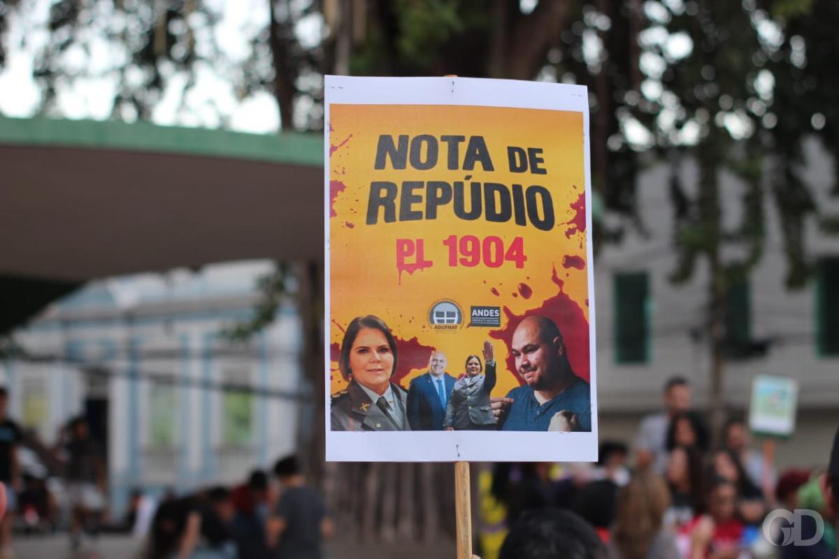 Manifestantes discursaram contra a atuação do deputado federal Abílio Brunini (PL) e a Coronel Fernanda (PL). Uma das pessoas presentes utilizou o megafone e relembrou a fala do parlamentar em que mulheres abortariam para "curtir a vida".