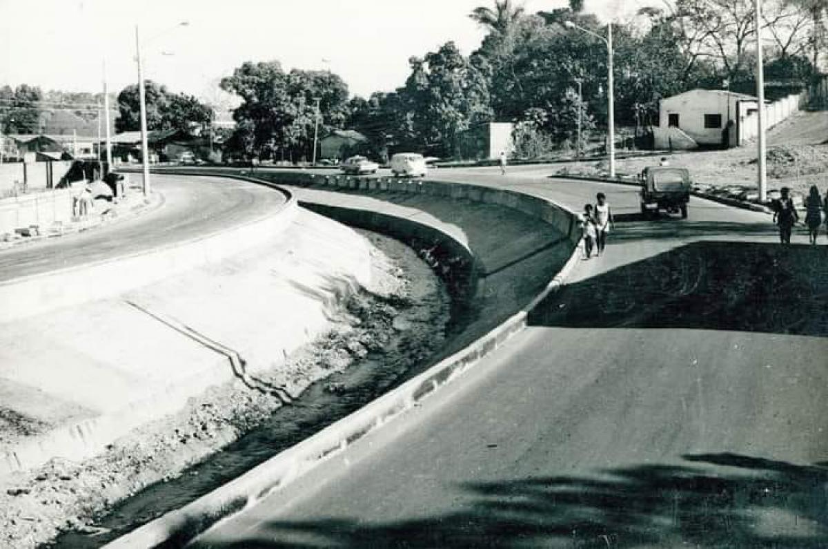 Foto publicada pela página mostra o trecho onde é hoje o colégio São Gonçalo. No registro do local da década de 1960 aparece o córrego ainda sem a canalização.