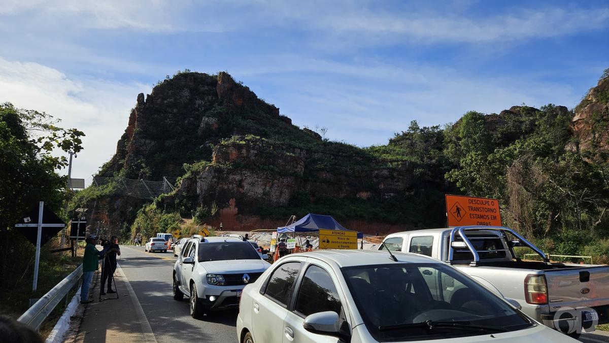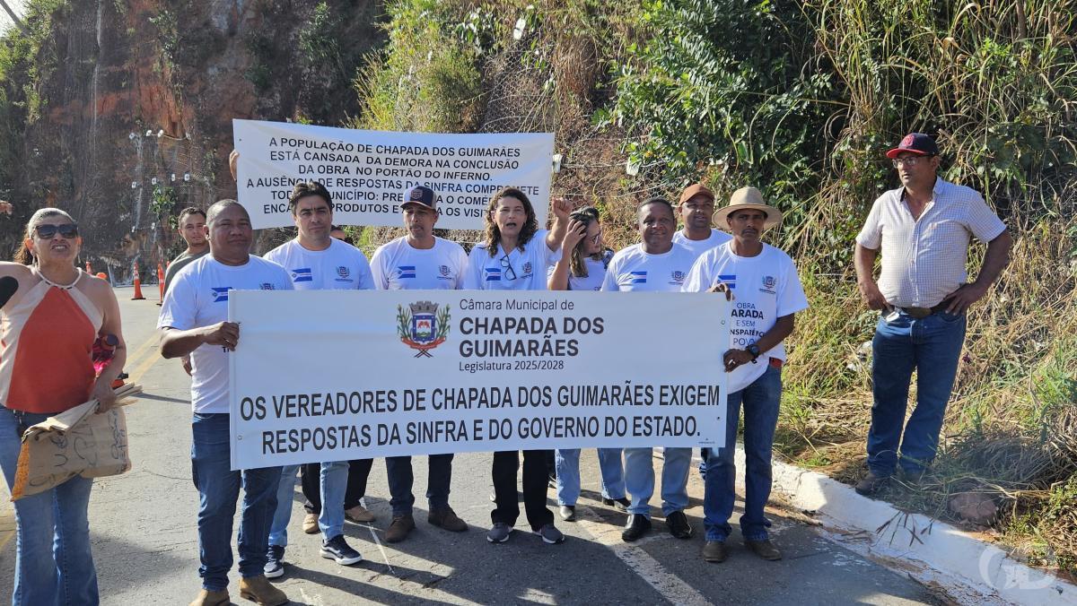 Passado mais de um ano e meio desde a primeira interdição do Portão do Inferno por conta do risco de desabamentos de rochas, houve pouco avanço nas obras de retaludamento do local, reclamam moradores e vereadores de Chapada dos Guimarães (67 km de Cuiabá). Para exigir explicações da Secretaria de Estado de Infraestrutura e Logística (Sinfra-MT), parlamentares chapadenses e cidadãos estiveram no local nesta segunda-feira (16) em protesto.