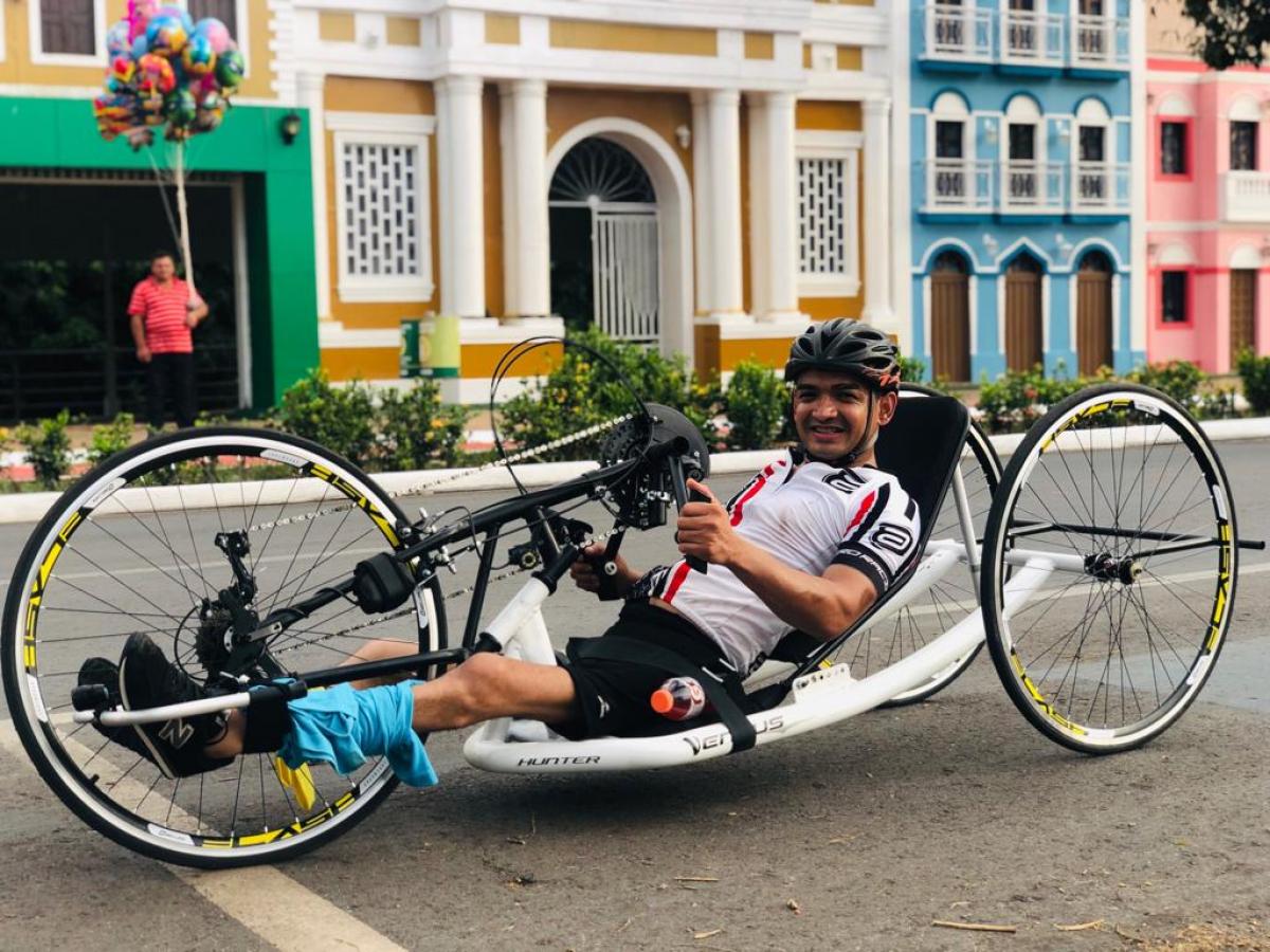 "Ele perguntou se eu não tinha interesse em praticar nenhum esporte. Se eu não fazia nada. Eu falei para ele que não. Ele me deu a dica de pesquisar na internet sobre a handbike. Eu pesquisei. Achei interessante até que as pessoas do meu trabalho começaram a pedalar. Me chamaram para pedalar e eu fui", explicou.