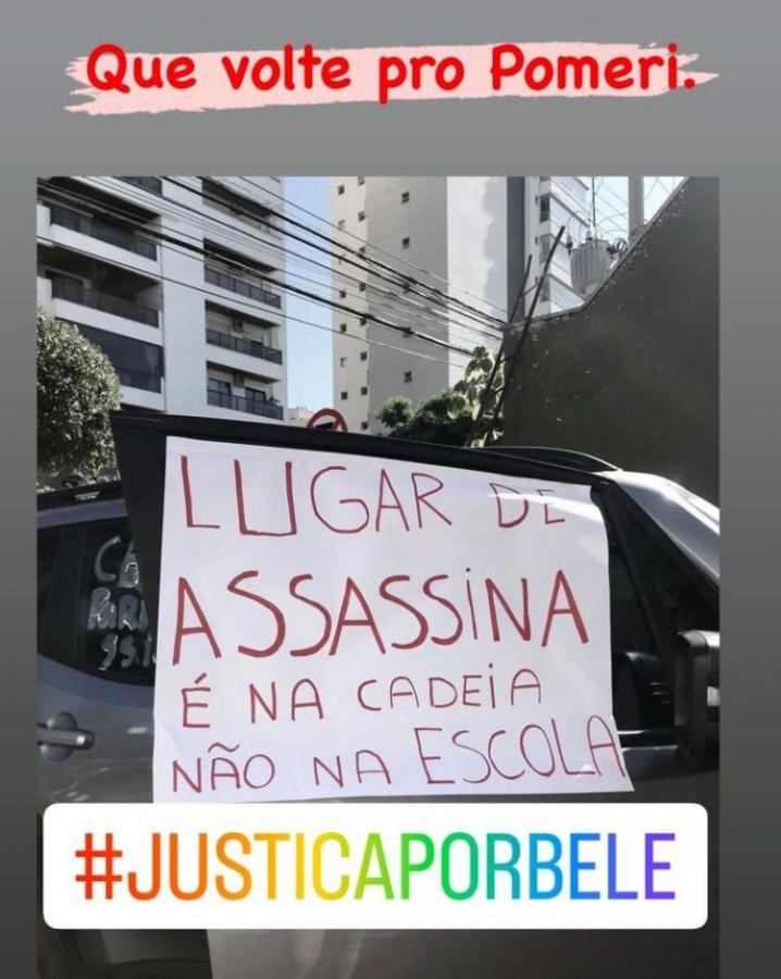 Desde a segunda-feira (25), data que marcou o retorno das aulas para os estudantes do Ensino Fundamental 2 e Ensino Médio, já era possível ver protestos, ainda que isolados, contra o retorno da menor. “Lugar de assassina é na cadeia, não na escola”, diz um dos cartazes.