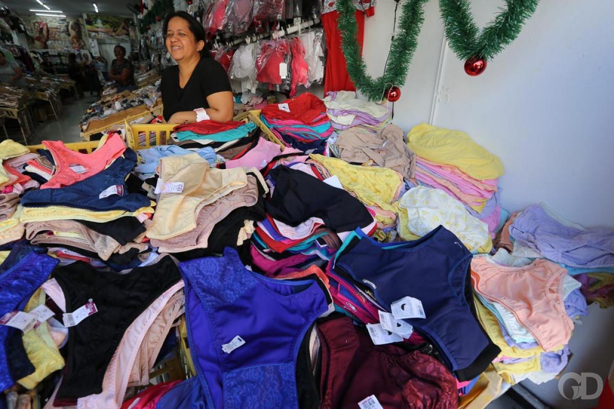 Outra peça que ganhou o gosto dos clientes foi uma camiseta com mensagens. “Foram 200 peças com mensagens de fim de ano, vendidas por R$ 5 cada uma e acabaram rápido, tinha cliente que levava para a família toda”. Por lá, é unânime, os clientes optarem pelo amarelo e branco. Calcinha, sutiã e cueca também estão na lista dos itens procurados.