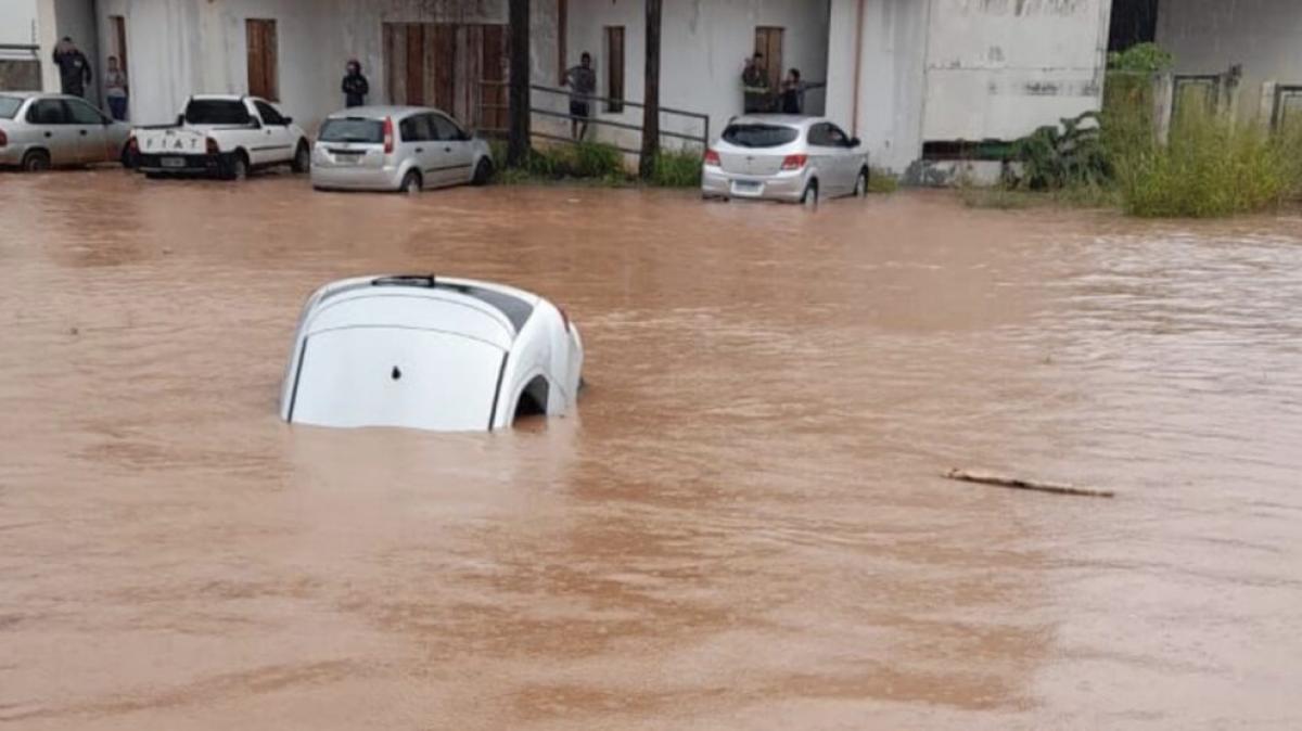 Uma viatura do Corpo de Bombeiros da cidade ficou presa na enxurrada, mas os militares conseguiram sair do local.