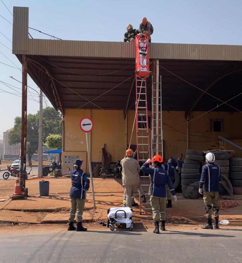 Os bombeiros confirmaram que o telhado não estava energizado, o que permitiu o início imediato dos procedimentos de resgate. Inicialmente, foi feito um acesso rápido para evitar a queda da vítima, que estava desorientada e agitada.