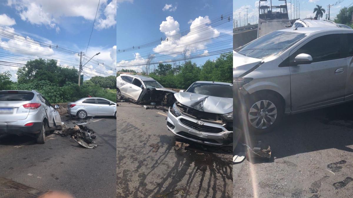 Atualizada às 16h28 - Um grave acidente envolvendo três veículos deixou uma pessoa ferida na tarde deste domingo (2), no Complexo do Tijucal, na região do Coxipó, em Cuiabá.