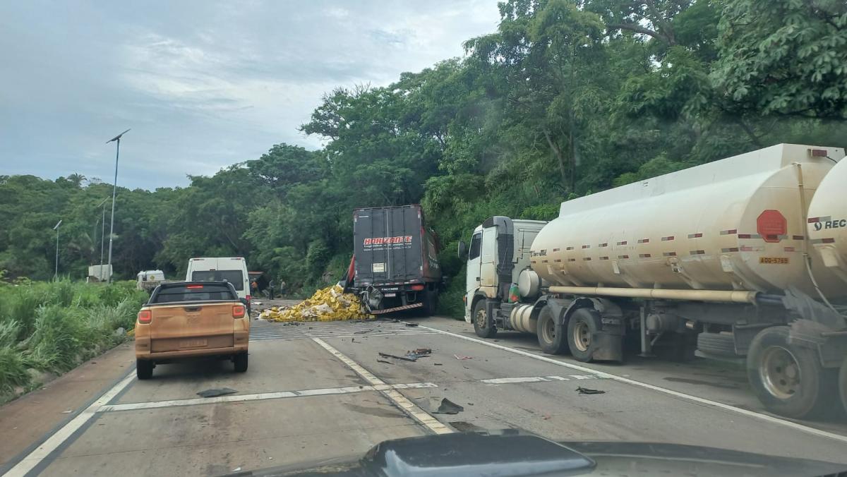 Acidente aconteceu no km-349 da Serra de São Vicente, sentido Rondonópolis à Cuiabá. As duas pistas ficaram totalmente bloqueadas.