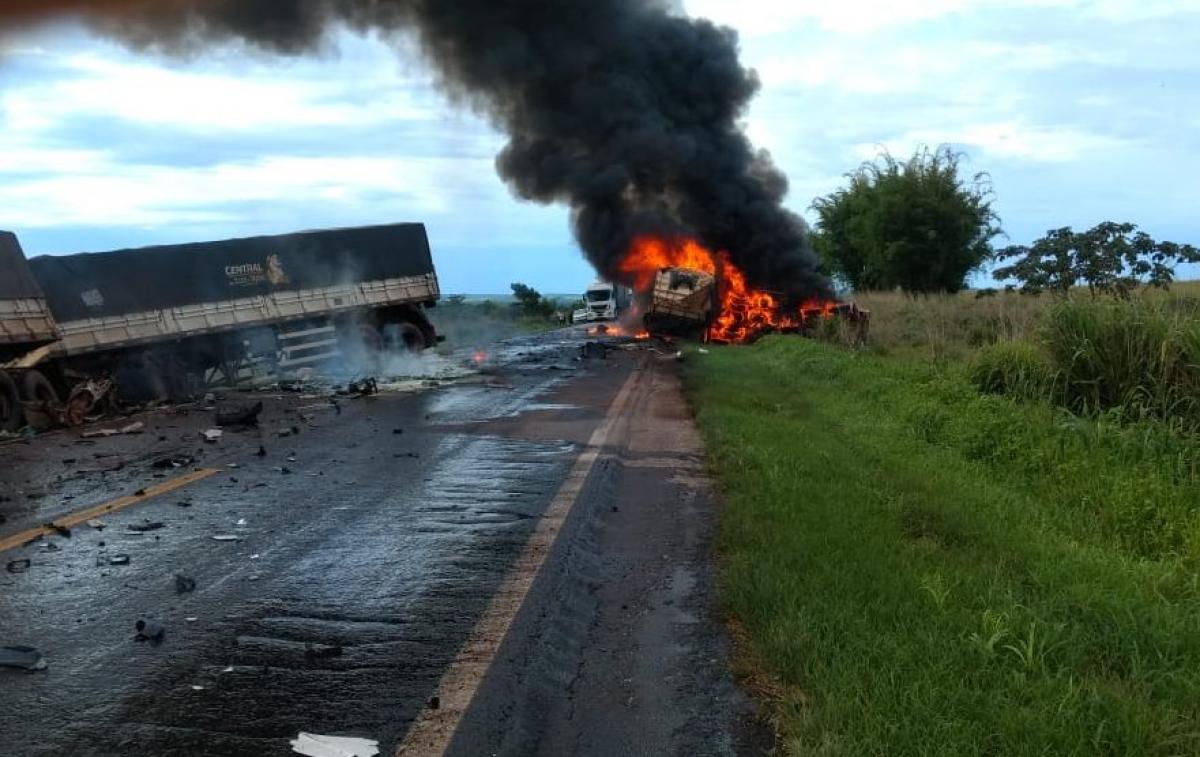 Atualizada às 10h20 Uma carreta carregada com milho pegou fogo, na manhã deste sábado (30), ao bater em outro veículo de carga e em um Honda Civic. O acidente ocorreu na BR 163, em Diamantino (208 km Médio Norte). Uma pessoa morreu e outras 7 ficaram feridas.
