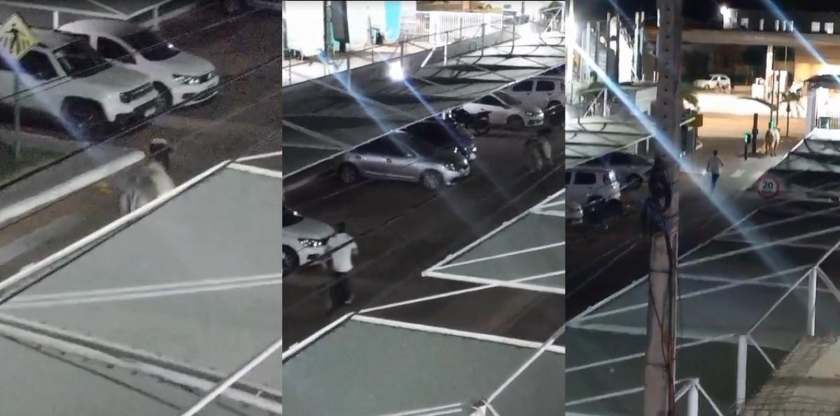 De acordo com a Guarda Municipal, os animais quebraram as cancelas e danificaram veículos que estavam no estacionamento do residencial. Nas imagens é possível ver o momento em que um dos bois corre pelas vias do condomínio, enquanto um homem corre atrás na tentativa de “capturá-lo”.