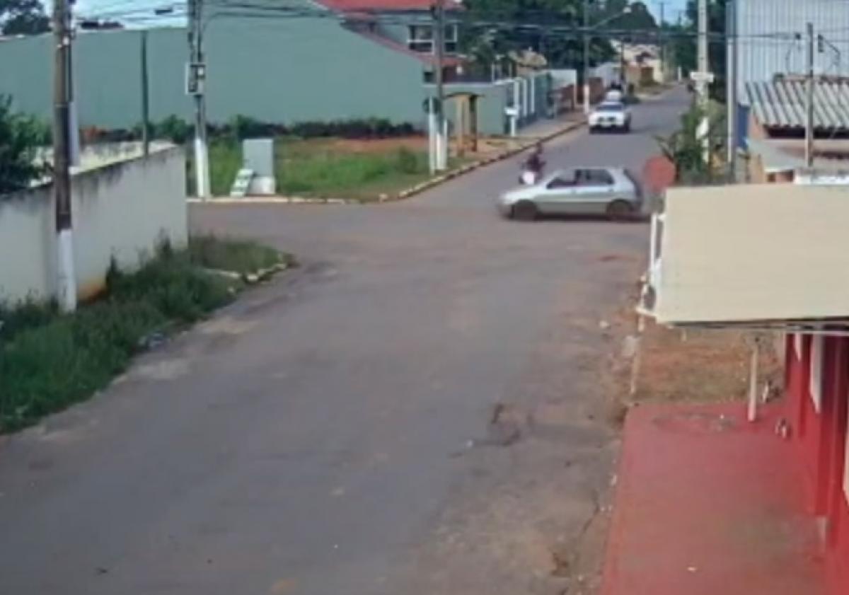 Um vídeo das câmeras de segurança mostra o exato momento do acidente, no cruzamento entre a as ruas ABC e Beri. O carro modelo Palio segue pela rua principal, quando é atingido pela moto que não para diante da sinalização.