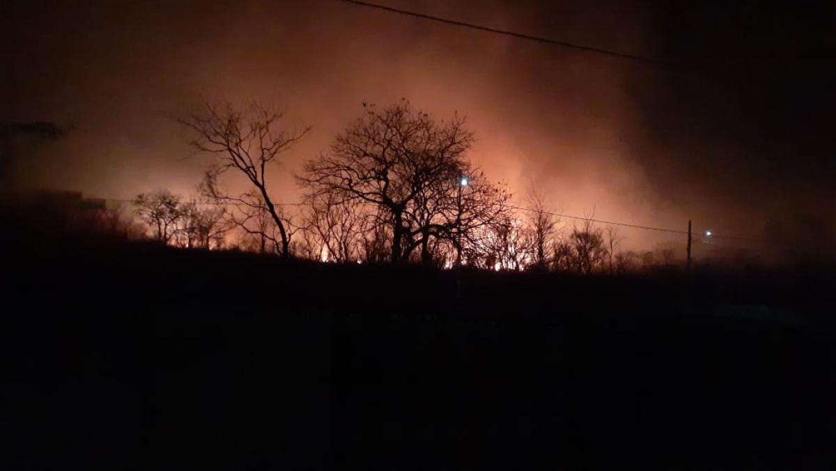 A sitiante conta que a área é de morro e o capim seco é um potente combustível para a queimada.