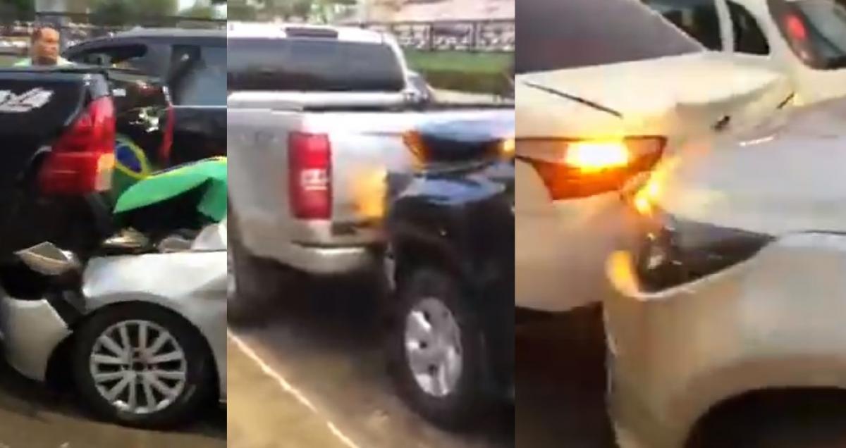 Seis veículos se envolveram em um engavetamento, na tarde de terça-feira (7), em Rondonópolis (215 km ao Sul de Cuiabá). Os motoristas participavam de ato pró-Bolsonaro, que seguia em carreata pela avenida Lions Internacional, uma das principais da cidade, quando aconteceram as colisões. Vídeo do acidente já viralizou nas redes sociais.