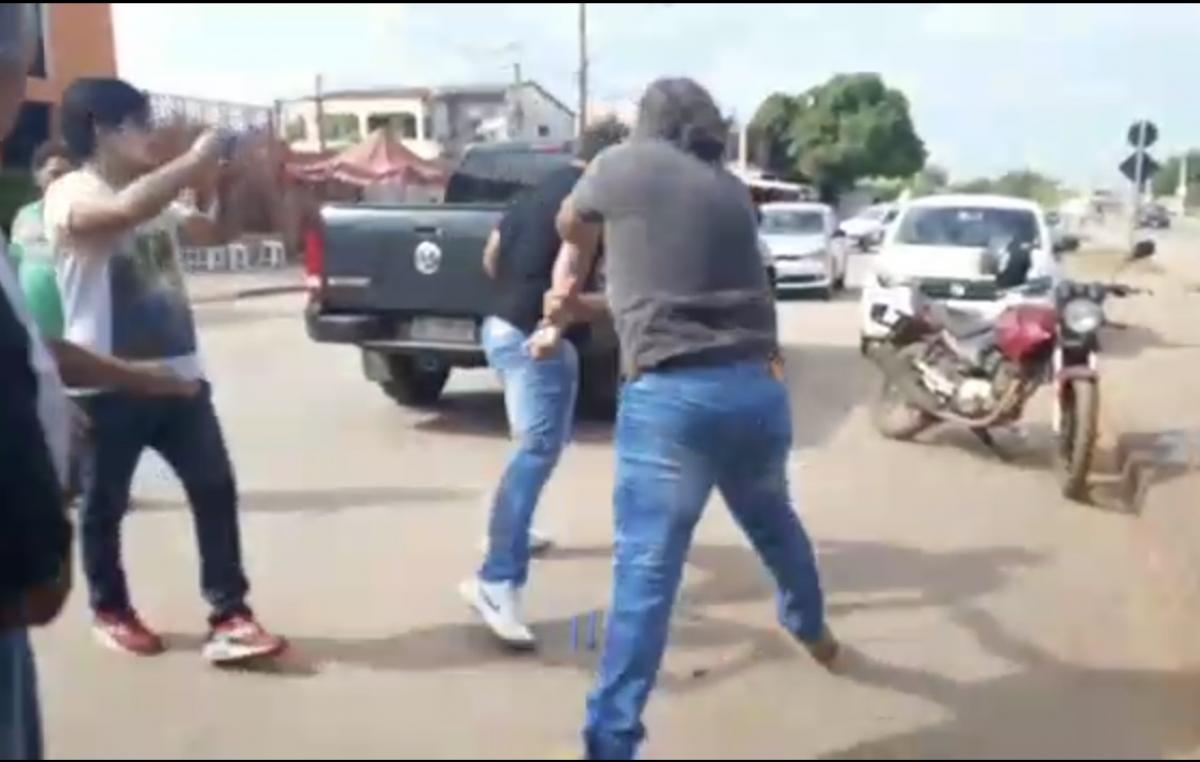 Em vídeo, é possível ver que enquanto os envolvidos trocam socos, o prefeito passa pelo público, entra no carro e vai embora.