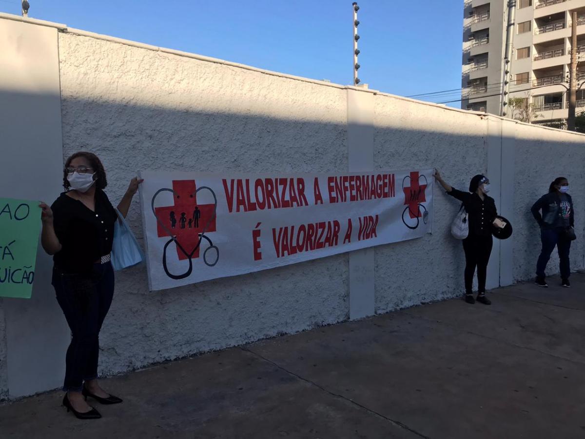Atualizada às 12h24 Um vídeo mostra o protesto realizado pelos técnicos de enfermagem que trabalham no Hospital São Matheus, em Cuiabá, na manhã desta segunda-feira (3). Eles reclamam por melhores condições de trabalho e pagamento adequado de bonificações as quais têm direito.