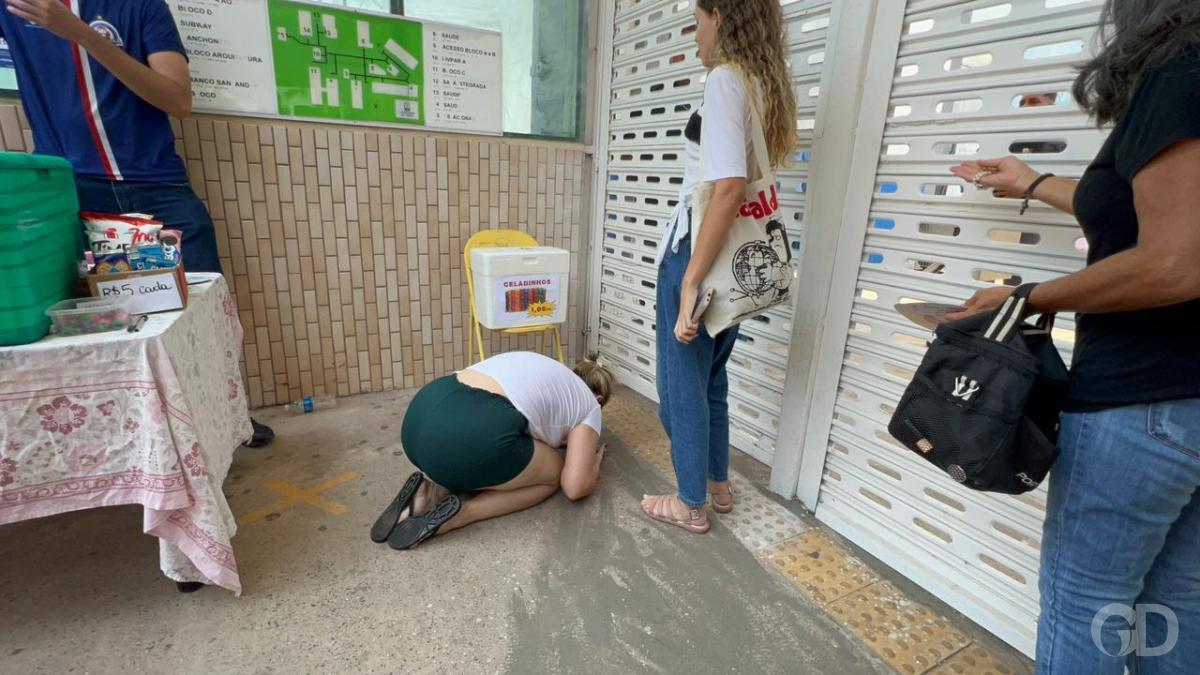 Mãe de uma candidata se desesperou ao chegar na Universidade de Cuiabá (Unic) com a filha e encontrar o portão fechado. Em Mato Grosso, os portões fecham às 12h.