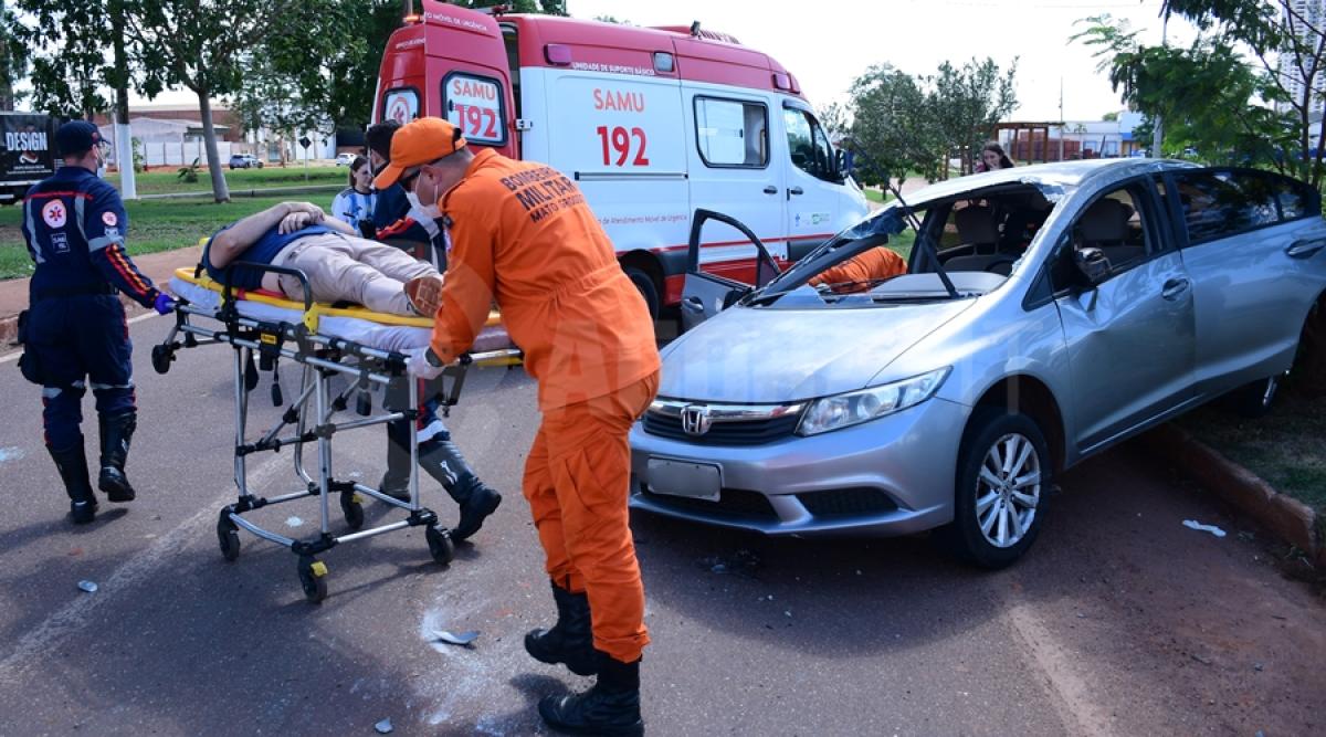 Com o impacto, o motorista perdeu o controle da direção, bateu no meio-fio e o carro capotou na pista.