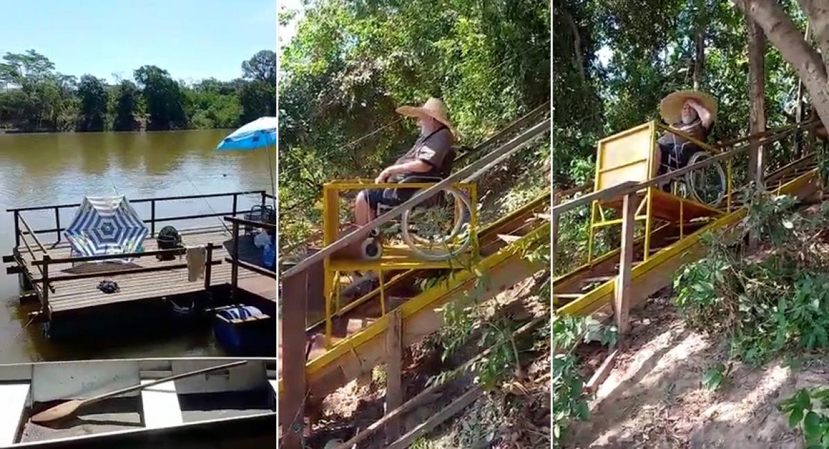 Pousada e Pesqueiro São José, localizada na cidade de Santo Antônio de Leverger, a 34 quilômetros de Cuiabá, viralizou nas redes sociais após o vídeo de um elevador adaptado a uma escada para atender cadeirantes tomar a Internet.